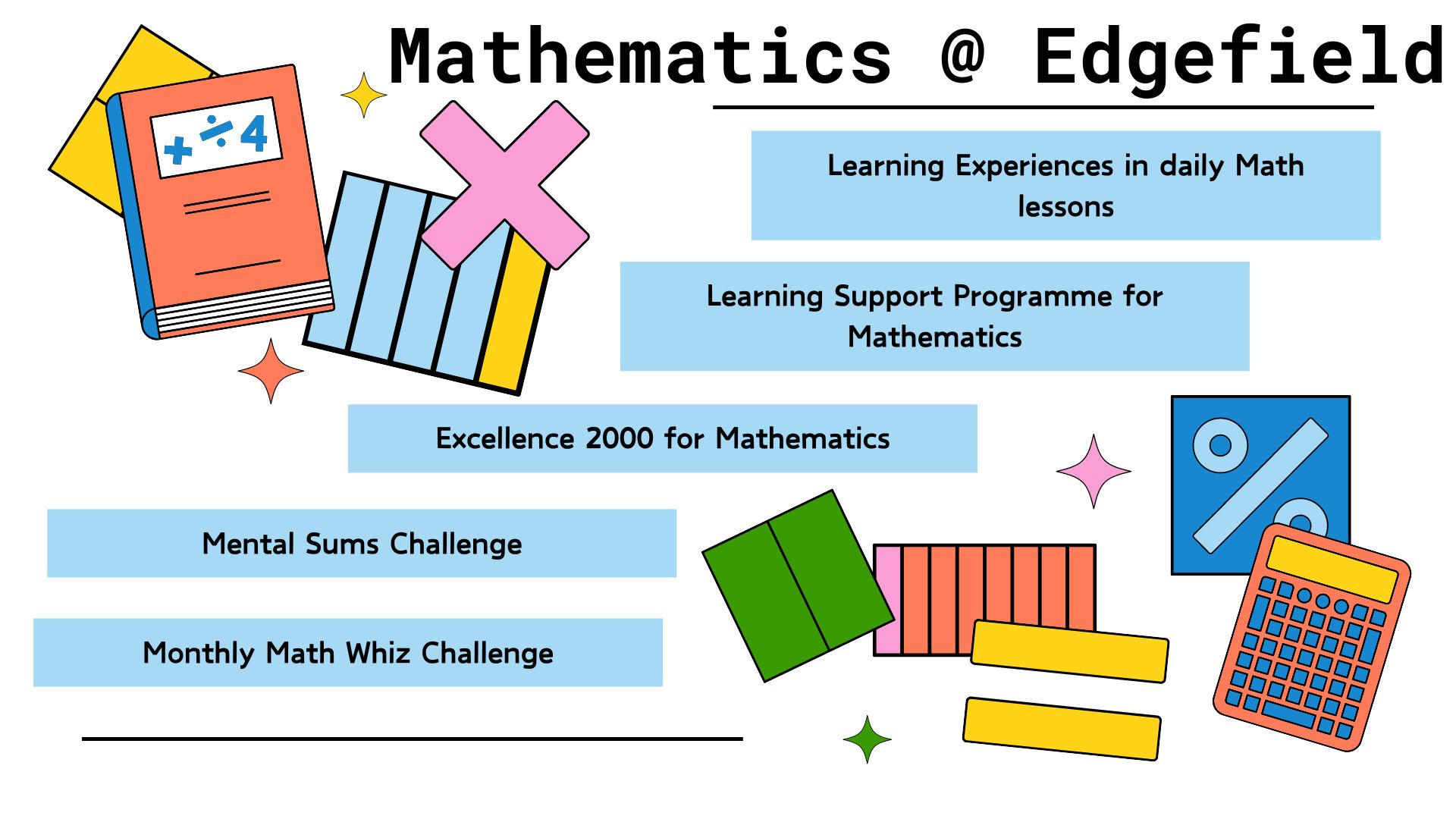 At Edgefield Primary School, we believe that every child has the potential to thrive in mathematics when given the right environment to grow, explore, and connect. Guided by our school’s motto, “Believe to See,” our Mathematics curriculum is designed to spark curiosity, deepen understanding, and build confidence in every learner.